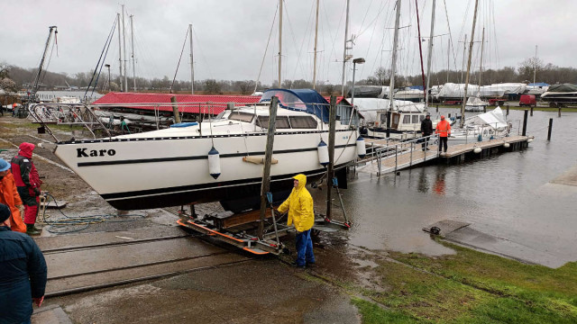 So ging’s am Samstag flott weiter und am Nachmittag waren so um 15 Uhr bereits alle Boote abgeslippt. Ein neuer vereinsinterner Rekord und ein großartiger Beweis dafür, was wir zusammen schaffen können! Nun liegen also alle unsere Schiffe an den (neuen) Schwimmstegen und wir freuen uns aufs Ansegeln am 22. April. Standesgemäß mit Feier am Abend…
