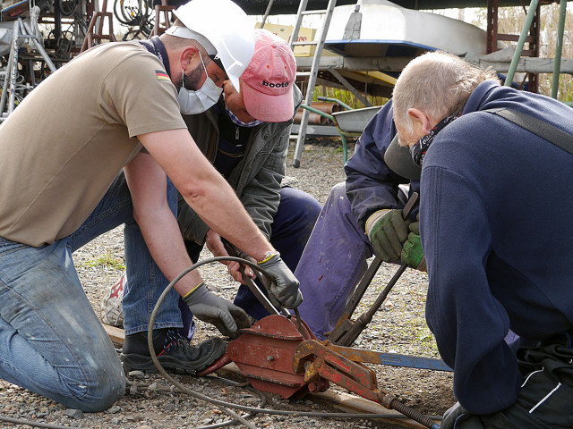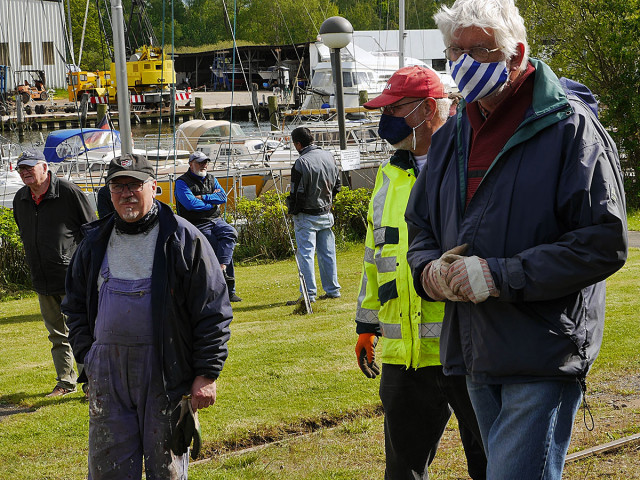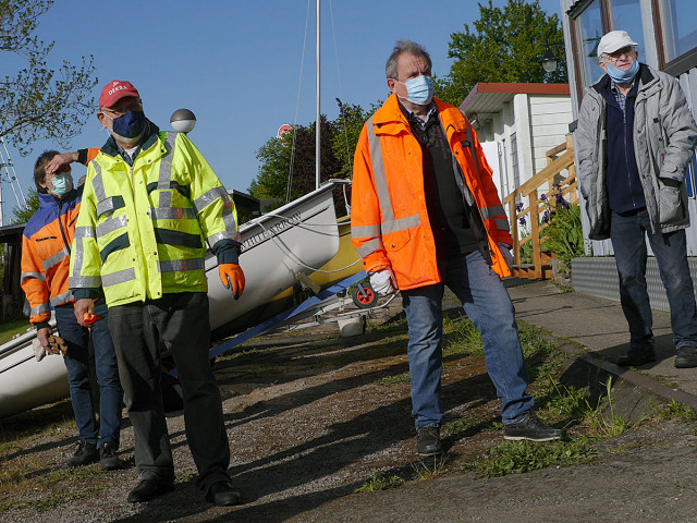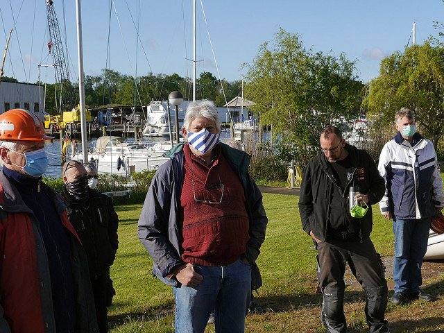 In diesem Jahr war aber alles anders – Corona hat auch hier seine Spuren hinterlassen: Sperrung des Verinsgeländes von März bis Mai und gemeinsames Abslippen nur unter strengen Auflagen. Eine der Auflagen: Es dürfen nur die da sein, die mitarbeiten und auch die nur mit Mund-Nase-Bedeckung und unter Einhaltung der Abstandsregeln …