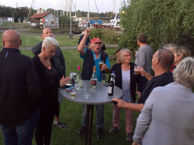 Besser hätte das Wetter für einen gemütlichen Grillabend gar nicht sein können. Bei mediterraner Temperatur und gut gekühlten Flüssigkeiten wurde das gebotene Grillfleisch und die Schinkenwurst mit Sättigungsbeilagen restlos abgeräumt.