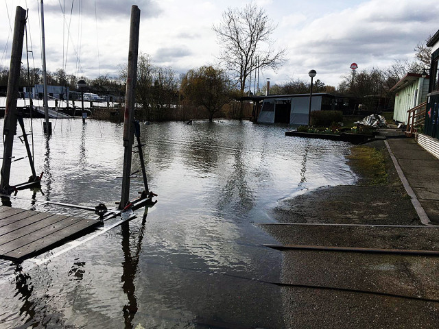 Es ist ja nicht so, dass wir nicht wüssten, wie sich Hochwasser bei uns am Verein bemerkbar macht – und normalerweise machen wir da auch nicht viel Aufhebens drum. Bis zu ‚nem Wasserstand von fünfeinhalb Metern bleiben wir entspannt – man kommt halt nicht mehr so einfach zum Boot. Aber das geht ja zur Zeit sowieso nicht.