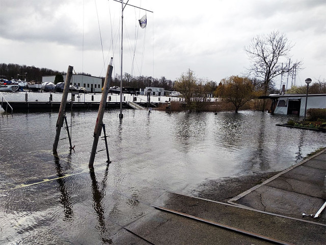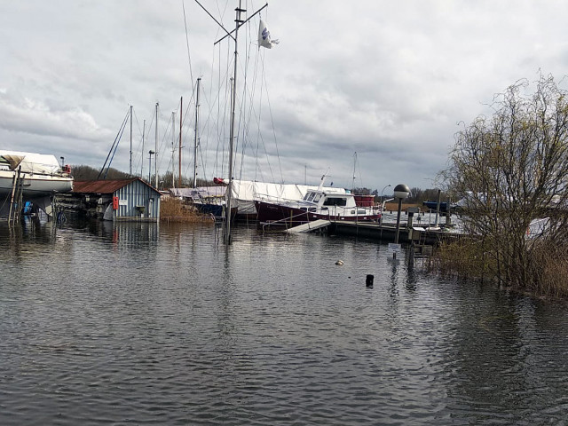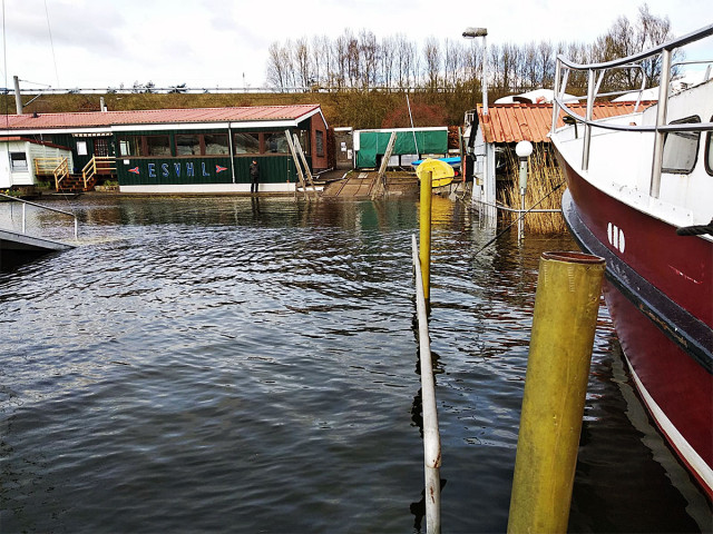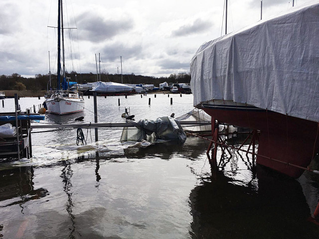 Wir kennen das ja: Wenn der Wind kräftig aus Norden weht, drückt’s das Wasser von der Ostsee regelmäßig Richtung Lübeck. Und je länger und stärker der Wind weht, desto höher das Wasser in Lübeck und bei uns im Verein. Jetzt war’s wieder mal soweit und für eines der Boote hätte das das Ende bedeuten können …